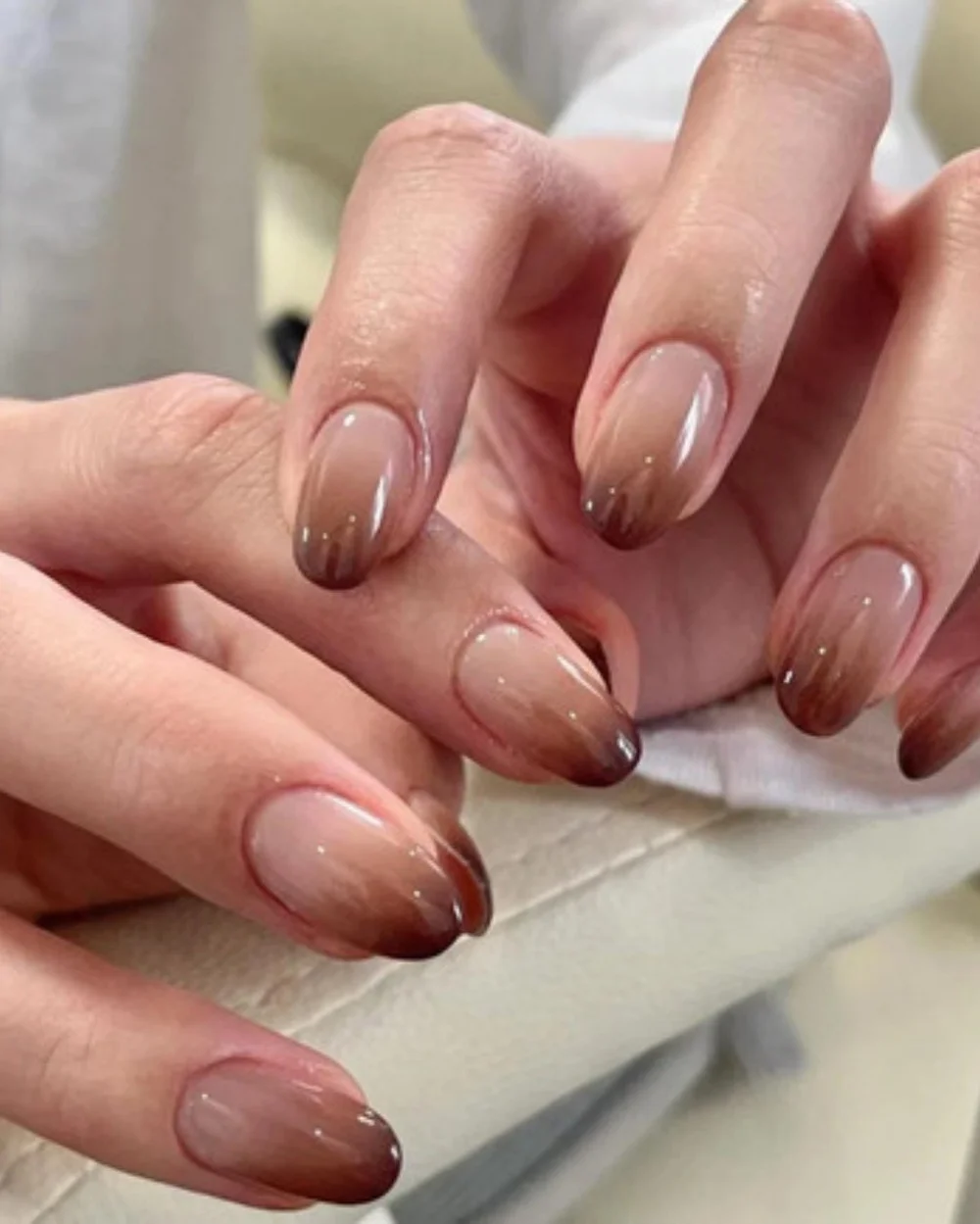 These ombré nails go from soft nude at the base to rich brown at the tips. It looks like a warm latte and honestly, I’m obsessed. It’s another great one for growing out since the fade is so natural. Plus, it feels more interesting than a solid color.